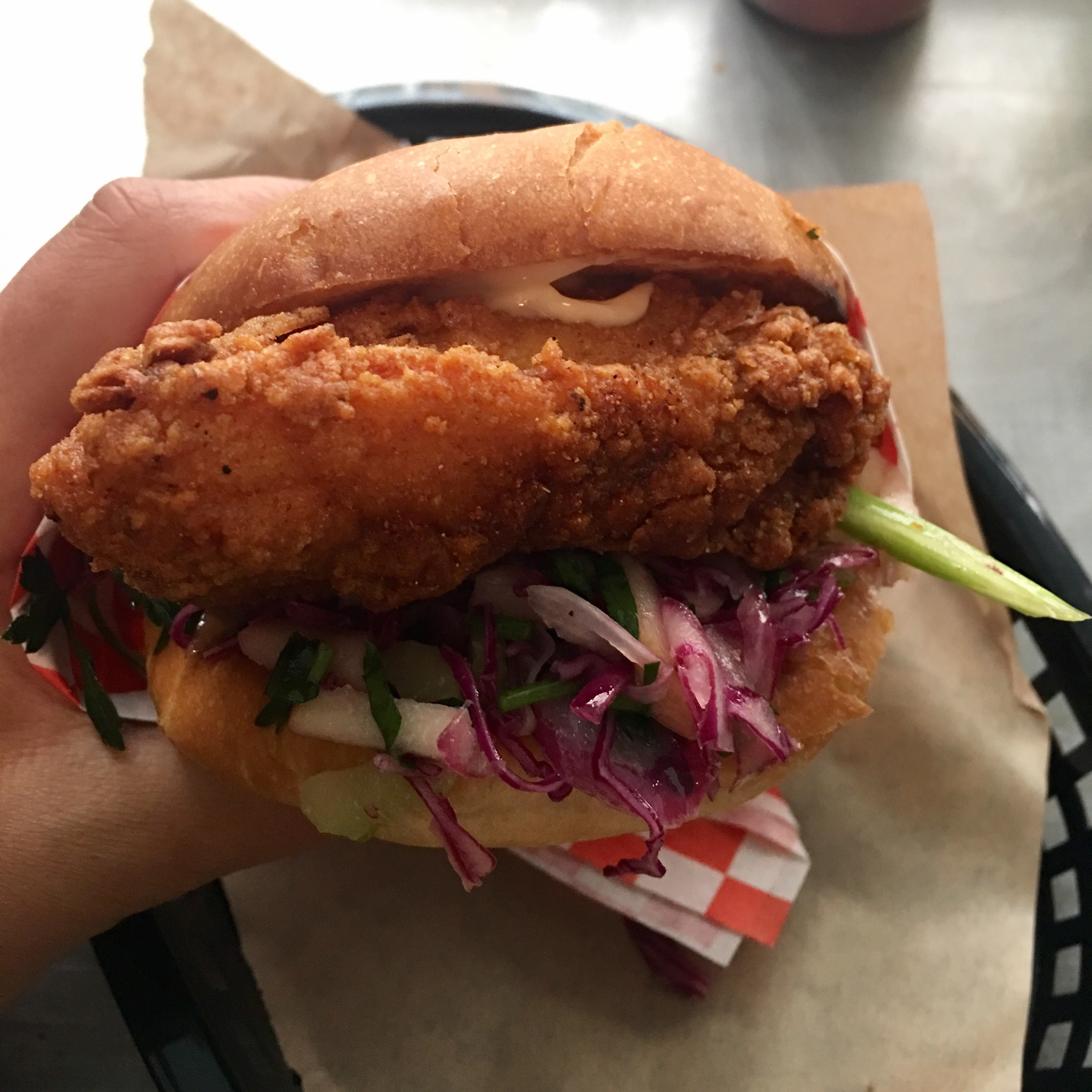 I went for the classic chicken sandwich. Overall it was good and I would be here all the time of I worked around the corner. The slaw was different to the average stuff out there, with a bit of an Asian twist. The apple fritters were super disappointing. Rove Kitchen has a better chicken sammie.